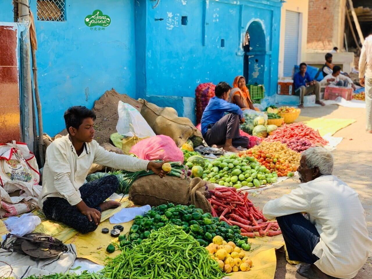 雖然三月不是克久拉霍最熱的季節,這溫暖陽光的熱度曬起來還是挺嚇人的,但這些新鮮蔬果、藍天與街道上人群衣物的鮮豔顏色的確很令人著迷,這是艾格尼斯愛跟著烏秘旭逛印度菜市場的最大原因。