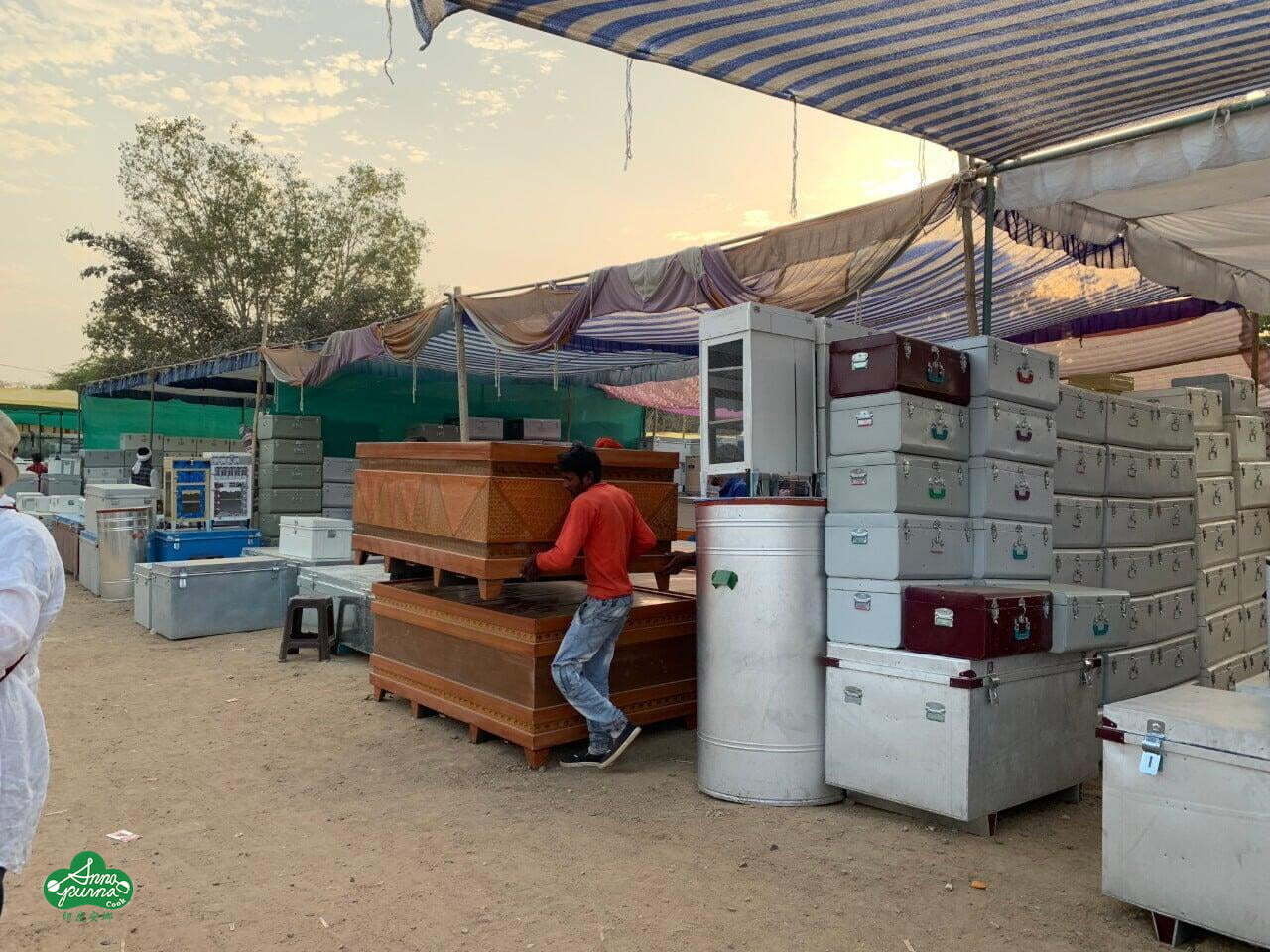 市集另一項熱門貨就是,大到可以裝下兩個爵士的超大箱子,豪華型的看起來跟棺材十分相像;不過沒看過墓碑沒見過棺材的印度教徒,這樣的箱子對於他們而言,完全沒有任何陰森的聯想。
